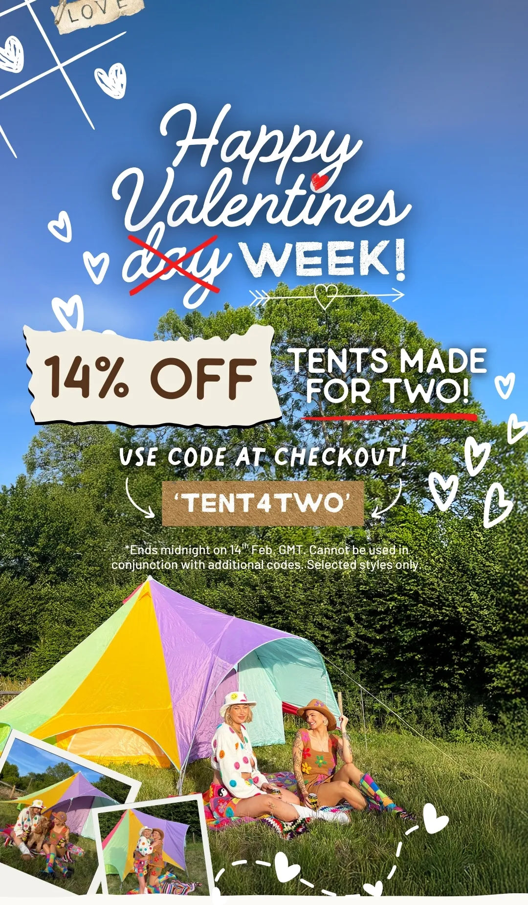 We offer tents in sizes 3m-8m and if you want to go big or go home, we’ve got massive tents that can fit up to 14 people!
