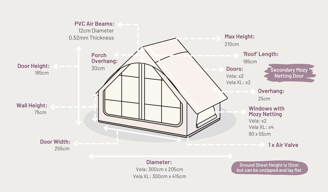 Yes! The Vela's inflatable design makes it easy to pitch indoors, as long as there's enough floor space. It’s a great option for events, sleepovers, or indoor glamping vibes.