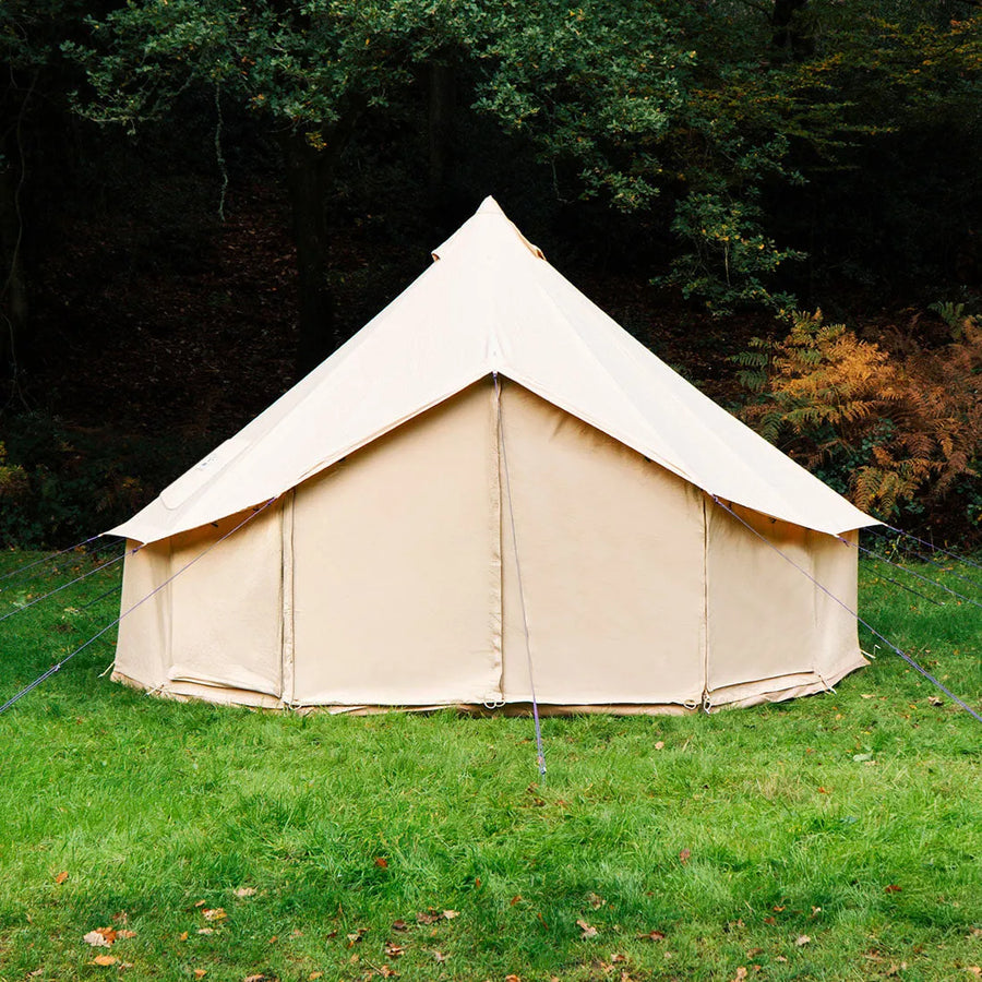 At 5m in size, the Bell Tent Pro can comfortably sleep up to 10 people in sleeping bags or 6 on beds. Check out our layout examples to get a better idea of how this may look!