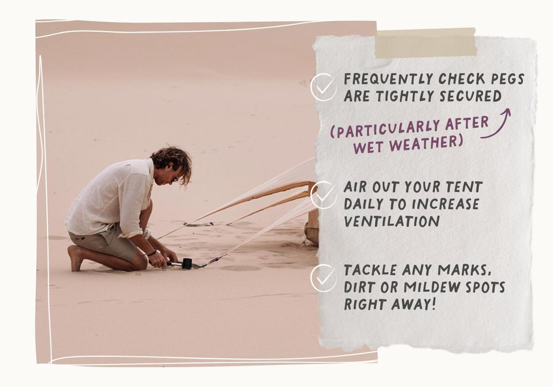 1d. Keep the canvas on top of the groundsheet + not in contact with the grass/ground.