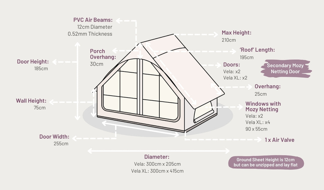 Yes! The Vela's inflatable design makes it easy to pitch indoors, as long as there's enough floor space. It’s a great option for events, sleepovers, or indoor glamping vibes.