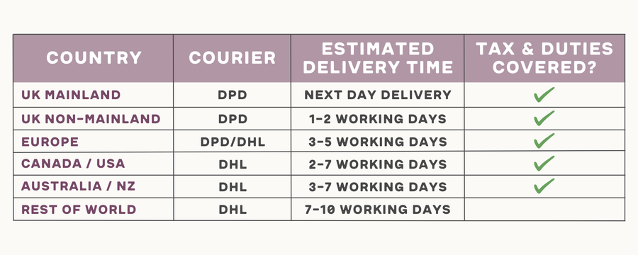 Simply drop us an email detailing your requested order (along with your full delivery address) and we'll get back to you with a fully bespoke shipping cost breakdown and pro-forma invoice.