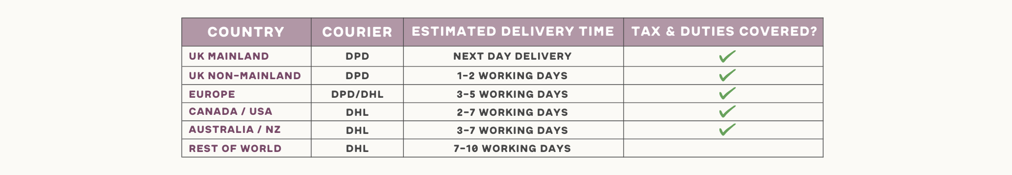 Please note these are only estimated delivery times and your orders may arrive earlier or later than that listed.