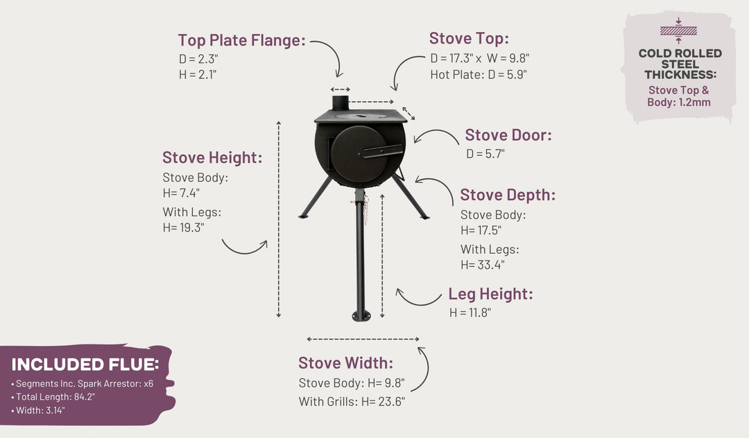 For the Portable Stove, we offer a water heater which connects to the flue and can be used for boiling/hot water. We recommend to purchase a carbon monoxide detector when using a stove inside a tent. We also offer a case iron set which can be used for cooking on the stove. Lastly, we sell firelights which can be used to get the fire going.
