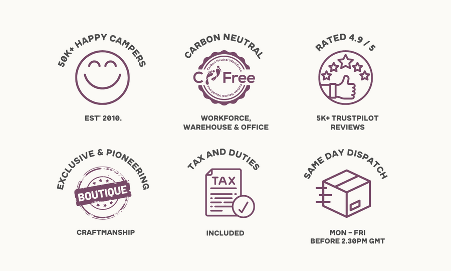 Compre hoy en la tienda Boutique Camping UK en línea y reciba el envío el mismo día cuando haga su pedido antes de las 2:30 p. m. (GMT), de lunes a viernes.