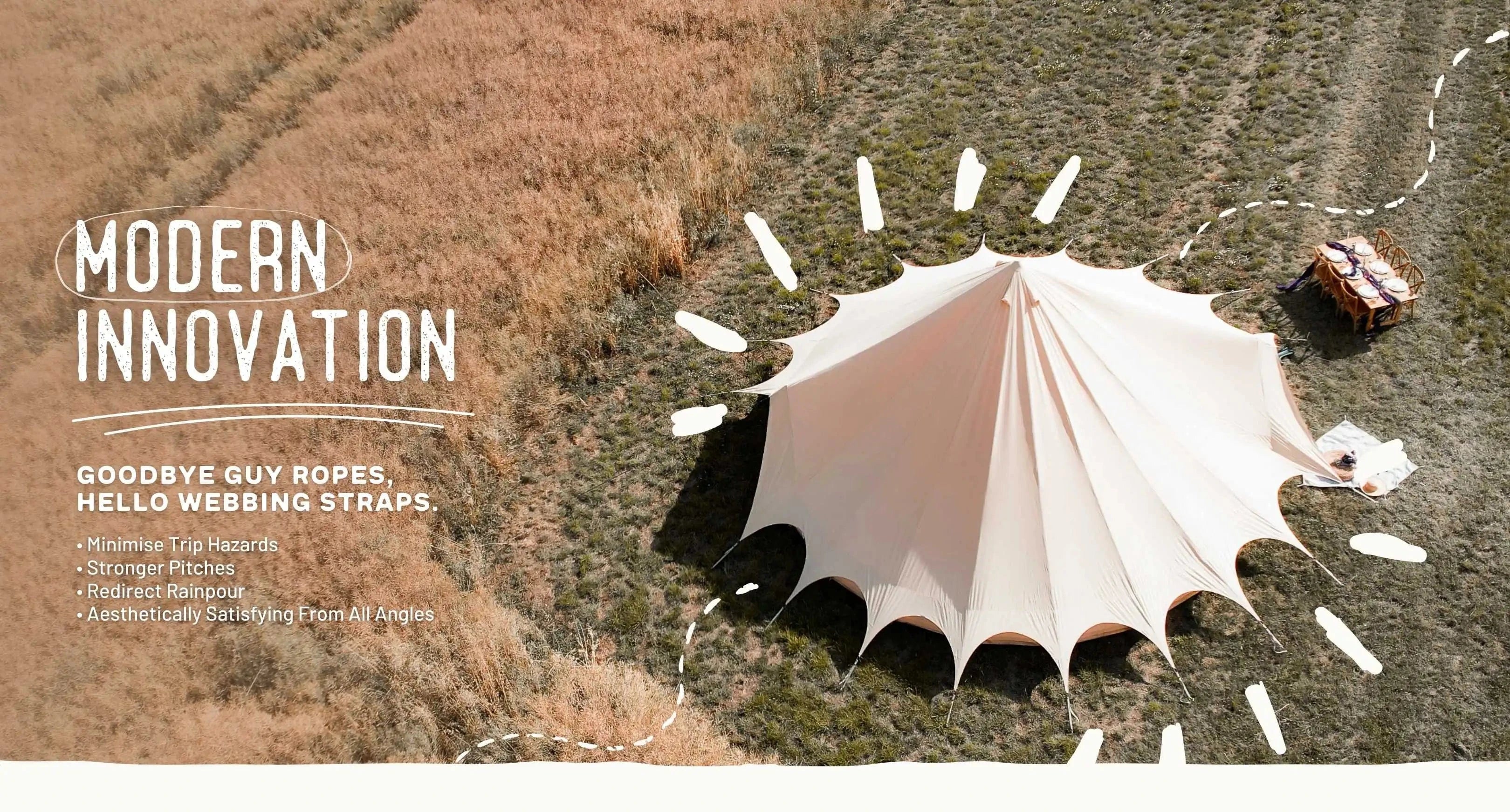 Nuestras brillantes carpas tipo campana han sido el rostro de nuestra marca desde nuestra creación en 2010. Inspirada en la carpa Sibely, la carpa tipo campana reinventa una favorita confiable con un toque moderno que es a la vez práctico y lujoso.