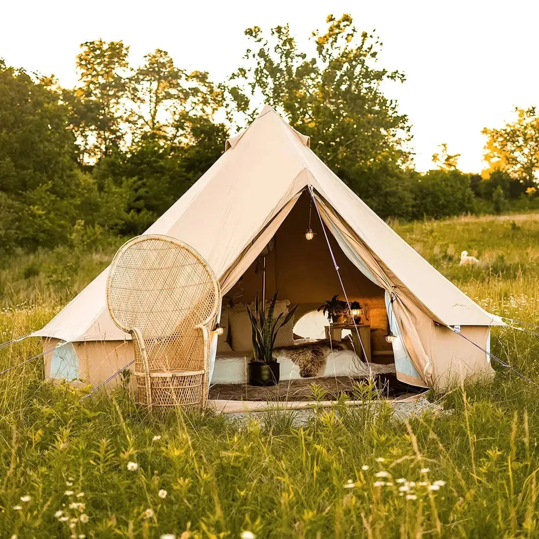 To enhance the Classic Bell Tent's durability, the fabric has been treated with a UV, rot, and water-repellent agent for longevity.