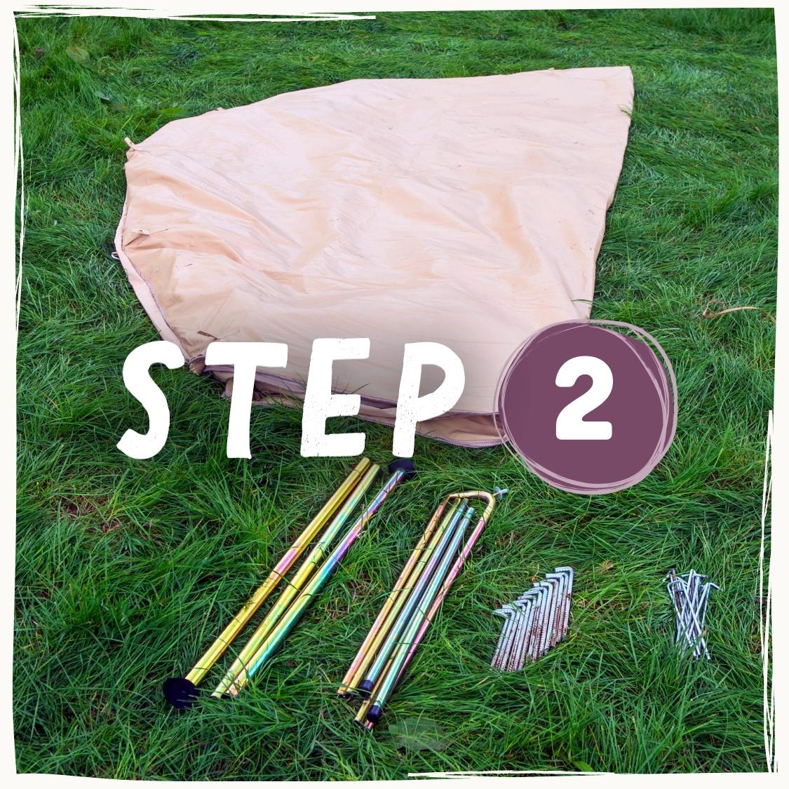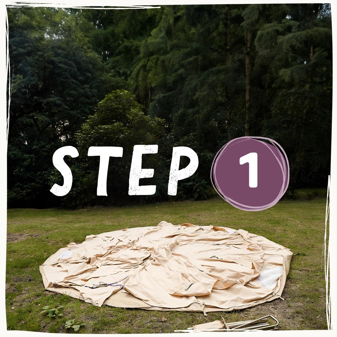 1c. Gardez la toile au-dessus du tapis de sol + pas en contact avec l'herbe/le sol.
