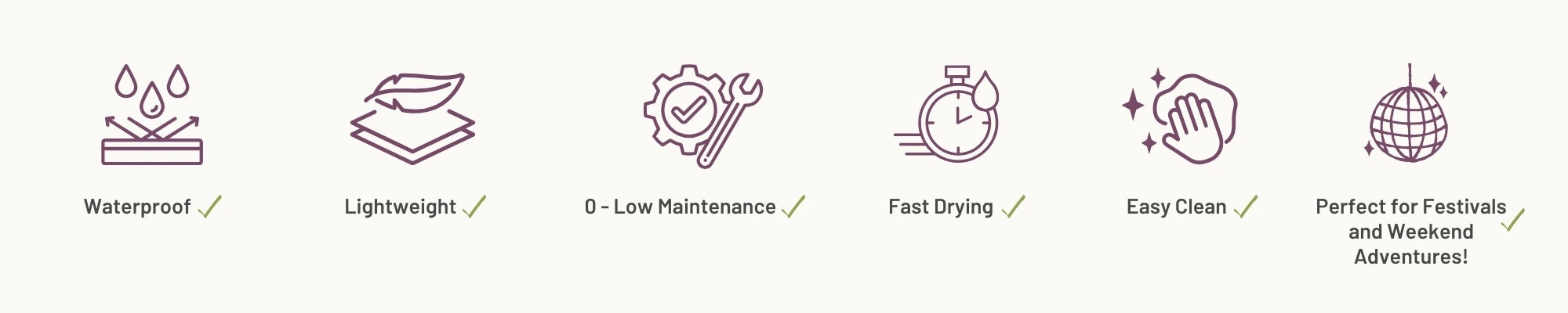 Our original 100gsm Oxford was ideal for portability: easy to pitch, easy to pack, and perfect for festival-hopping or weekend getaways. On the other hand, the 230gsm version offered enhanced strength and a more substantial feel, but at the cost of weight.