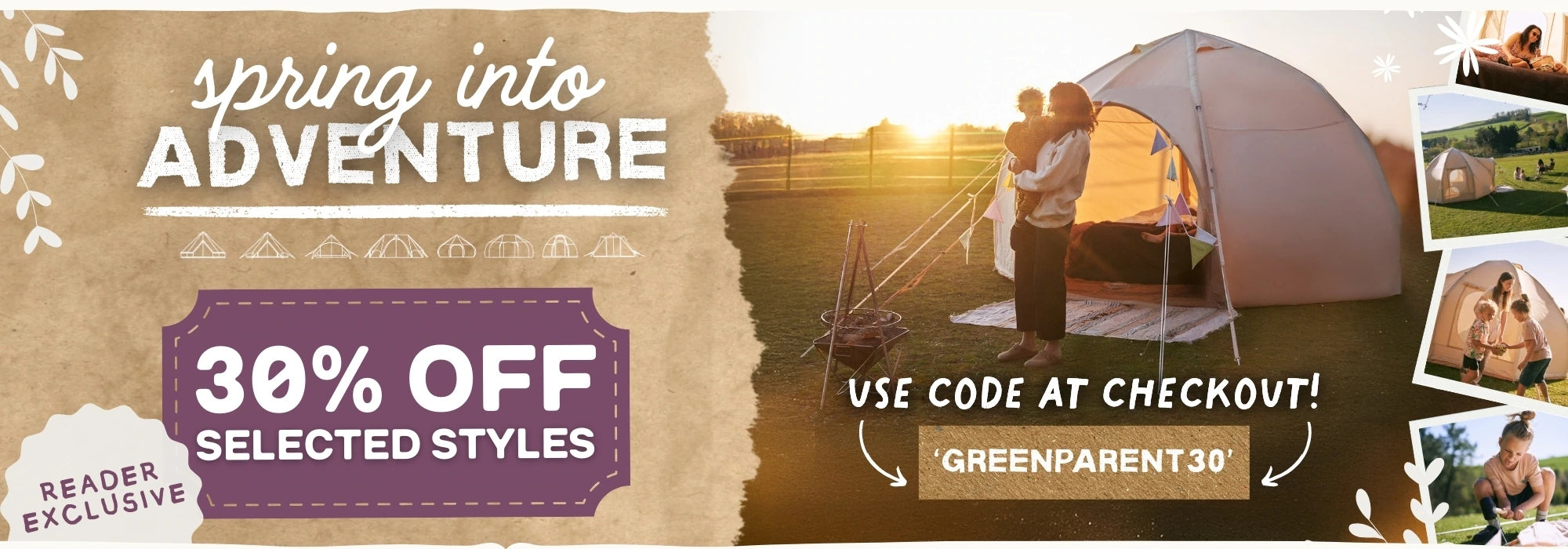 Exclusive for Green Parent readers, get an EXTRA 30% OFF our best glamping tents, designed with families in mind!