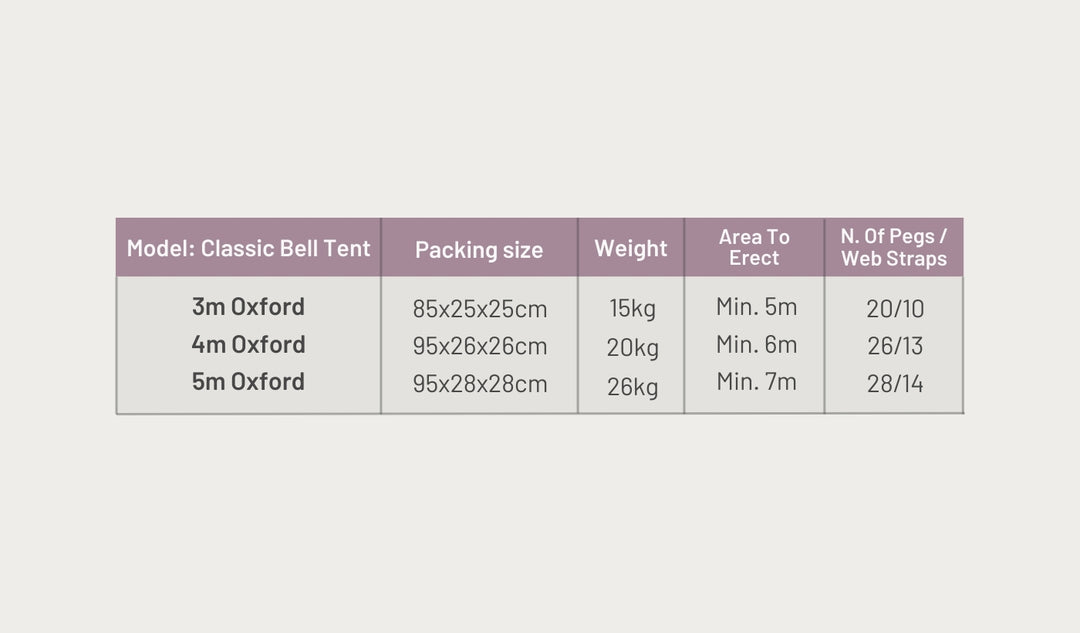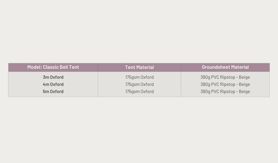The Classic Bell Tent has seen an upgrade in the door height, with door heights increased on the 4m to 1.8m and the 5m+ to 2m. We have also made the centre poles stronger to enhance the overall performance. We have ditched 100gsm & 200gsm for a new and improved 175gsm weight, which has a luxurious matte finish.